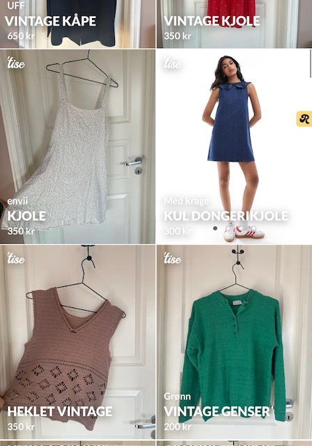Jeg selger utvalgte vintageklær og hekla luer jeg har laget selv med gjenbruksgarn. Jeg er opptatt av gjenbruk, kreativitet og kvalitet.